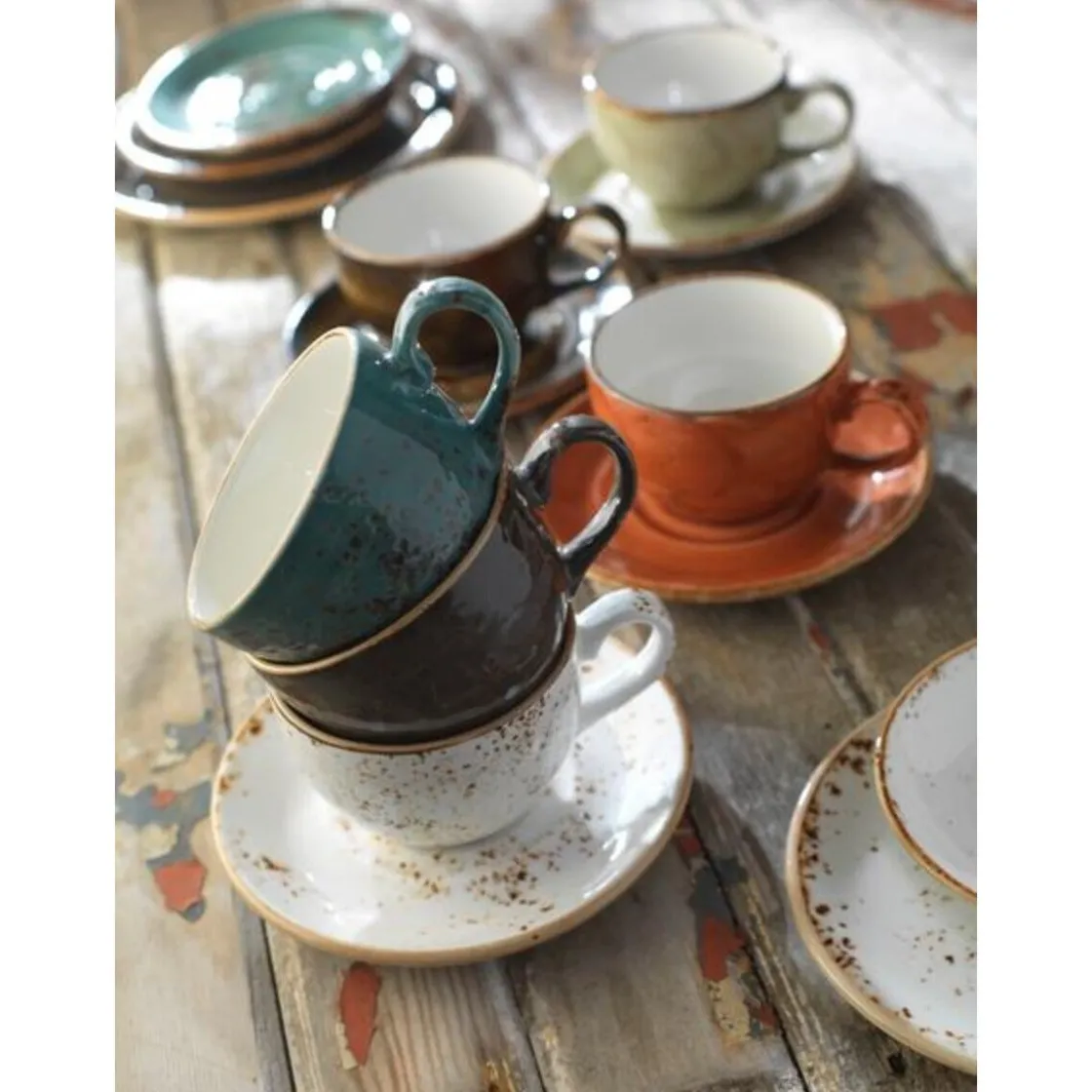 Lauter kleine Zufallseffekte, die durch den Brennvorgang in der Glasur entstehen, machen die Kollektion Craft Blue, zu der auch diese niedrige Tasse gehört, so einzigartig. Kein Teil gleicht dem anderen, lediglich die schlichte Formsprache bleibt sich treu. Die zufälligen „Special Effects“ und kleinen Unebenheiten verleihen dem Vitro-Porzellan von ihren rustikalen Touch. Das Design ist inspiriert von einfacher Handwerkskunst. Die glänzende und unwahrscheinlich strapazierfähige Glasur wird dreifach von Hand aufgetragen.