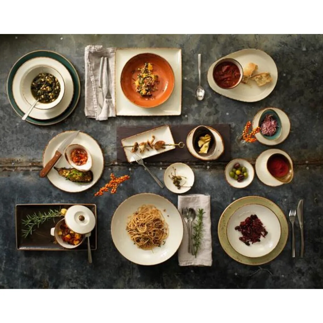 Lauter kleine Zufallseffekte, die durch den Brennvorgang auf der Glasur entstehen, machen die Kollektion Craft White, zu der auch die rechteckige Platte gehört, so einzigartig. Kein Teil gleicht dem anderen, lediglich die schlichte Formsprache bleibt sich treu. Die zufälligen „Special Effects“ und kleinen Unebenheiten verleihen der Keramik von ihren rustikalen Touch. Das Design ist inspiriert von einfacher Handwerkskunst. Die glänzende und unwahrscheinlich strapazierfähige Glasur wird von Hand aufgetragen