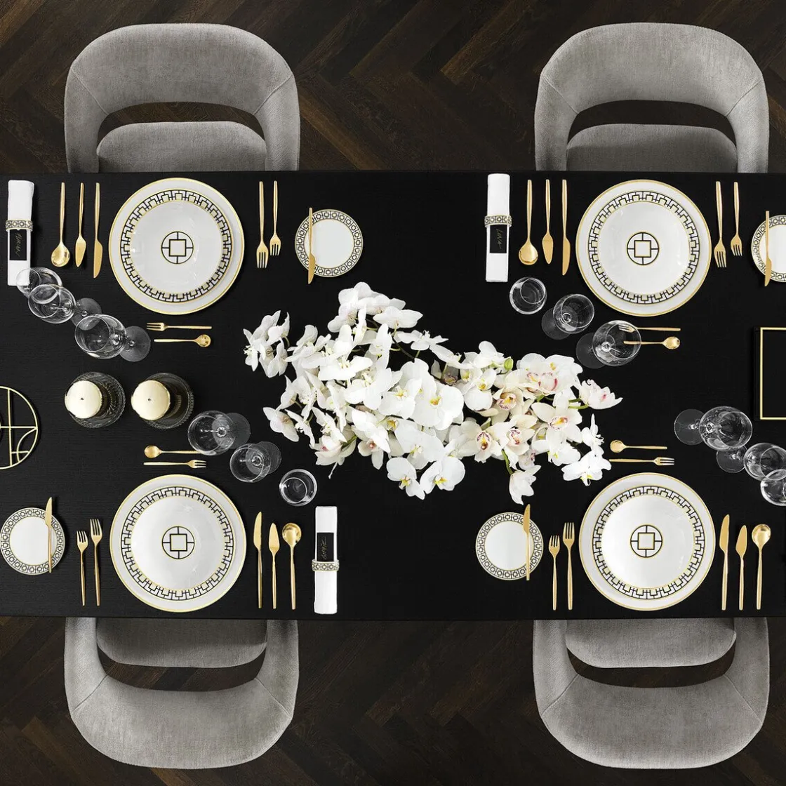 Der Suppenteller MetroChic von bringt eine exklusive Anmut auf die Tafel, die durch die Kombination aus einem zarten Weiß, klaren Farbfacetten in Schwarz und schillernden Nuancen aus 20 Karat Gold entsteht. Schaffen Sie mit diesem Teller ein Tischbild, das von exquisiter Brillanz geprägt ist und der Haute Cuisine alle Ehre macht.