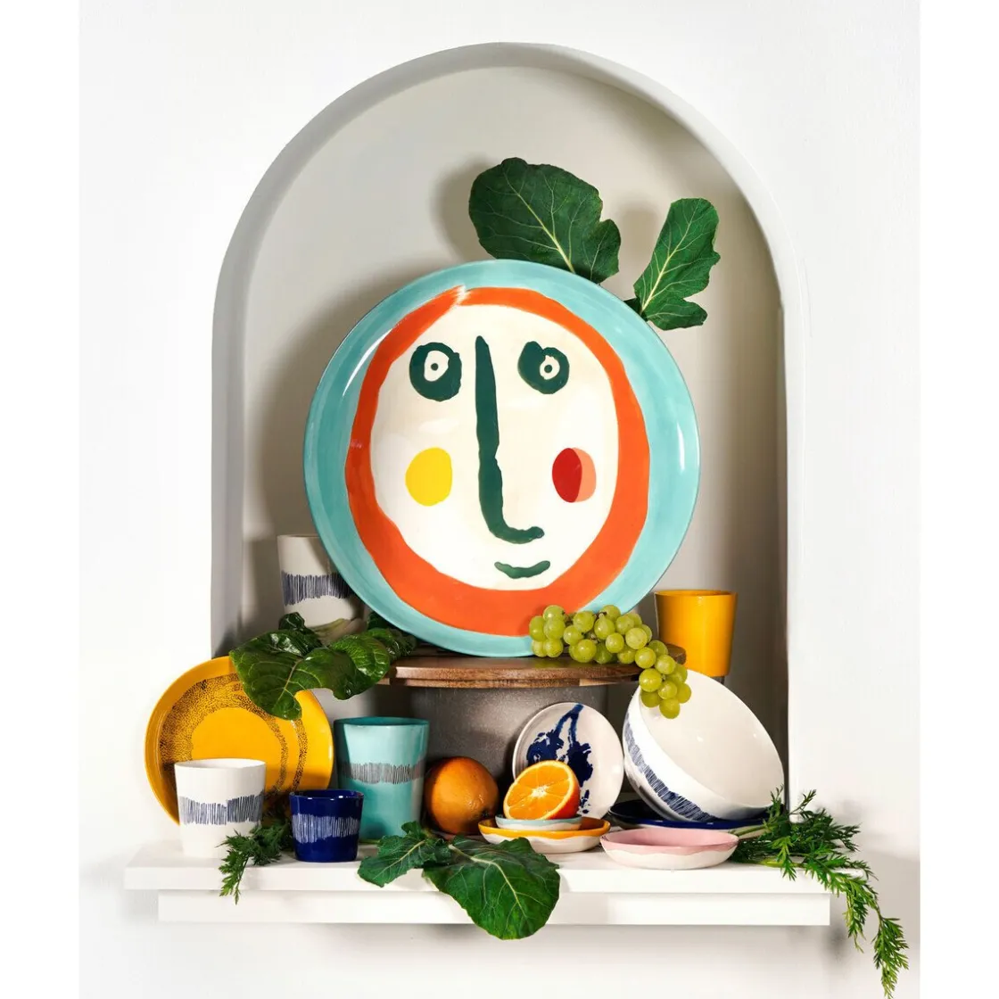 - Striche beleben das klare, frische Steingut