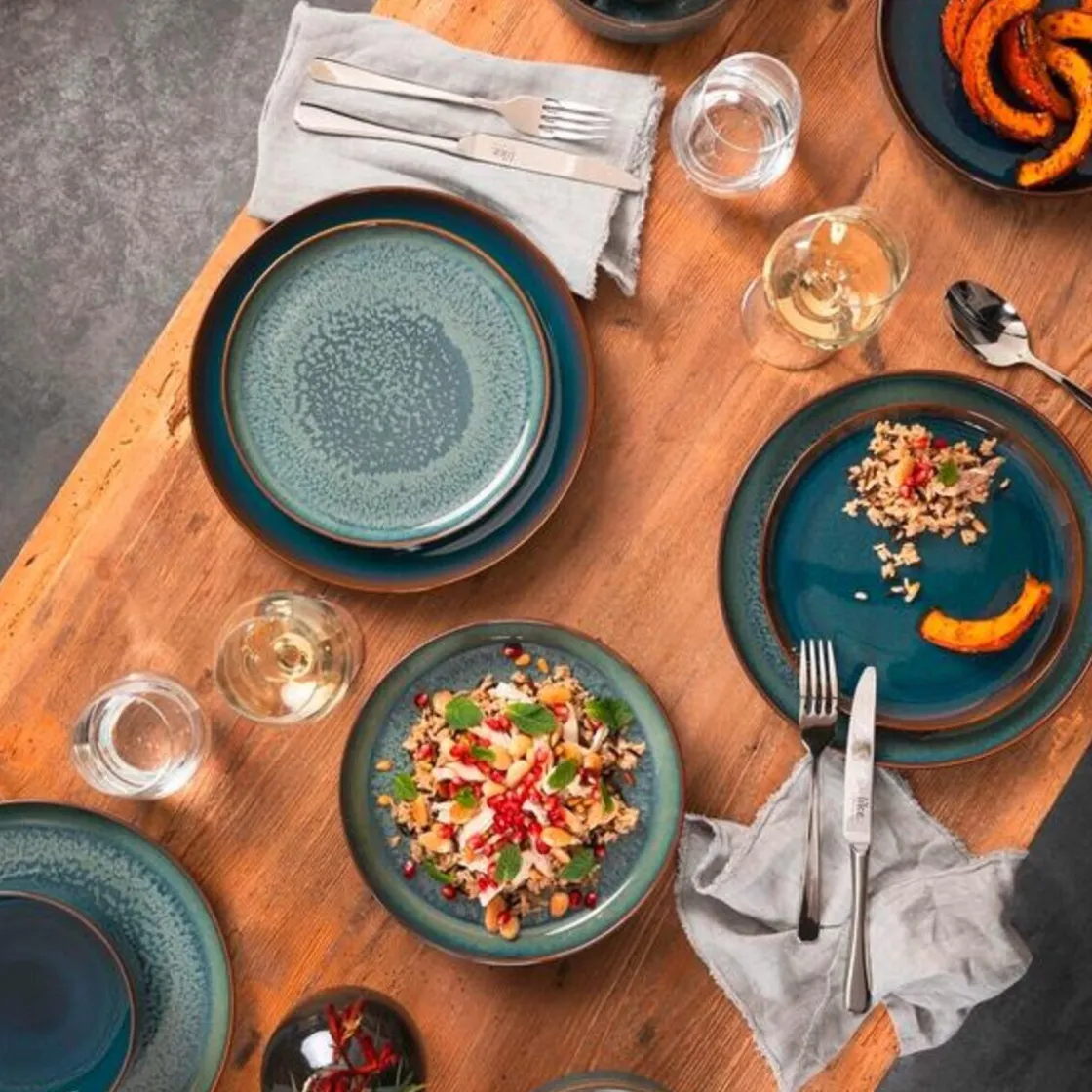 Der Farbton Breeze, ein verwaschenes Jeans-Blau, wird durch einen kräftigen Töpfer-Braunton eingerahmt. Jede Farbe für sich wirkt trendbewusst und mediterran. Dank den vielfältigen Kombinationsmöglichkeiten kommt mit dem schlicht gehaltenen Teller-Set Crafted Breeze garantiert keine Langeweile auf.