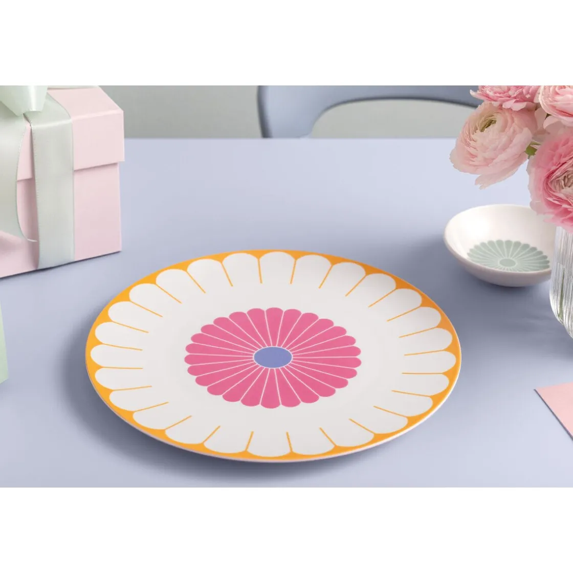 Mit dem floralen Servierteller Fleur couleur von untermalen Sie Häppchen, Spieße und Muffins mit blumigem Charme. Die Neuinterpretation floraler Formen verleiht dem Stück eine verspielte Modernität, die als blickfangendes Highlight genutzt werden kann, sich aber auch in ein fröhliches Mix & Match integriert. Schaffen Sie mit diesem Teller ein Tischbild, das Blumen kunstvoll in den Mittelpunkt stellt.