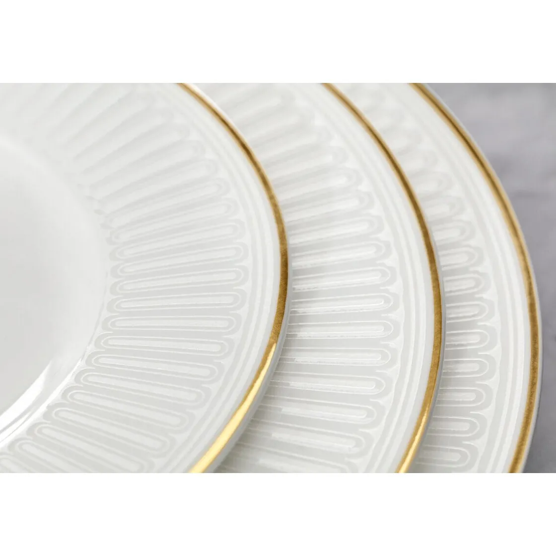Der Frühstücksteller Château Septfontaines von kommt mit puristischer Klarheit daher und setzt Croissants, Obst oder Brote ausgezeichnet in Szene. Die filigran verzierte Fahne schmeichelt Ihren Köstlichkeiten mit einem raffinierten Relief und einer 20-karätigen Goldkontur. So starten Sie mit einem luxuriösen Hauch und der Wertschätzung für gutes Essen glanzvoll in den Tag.