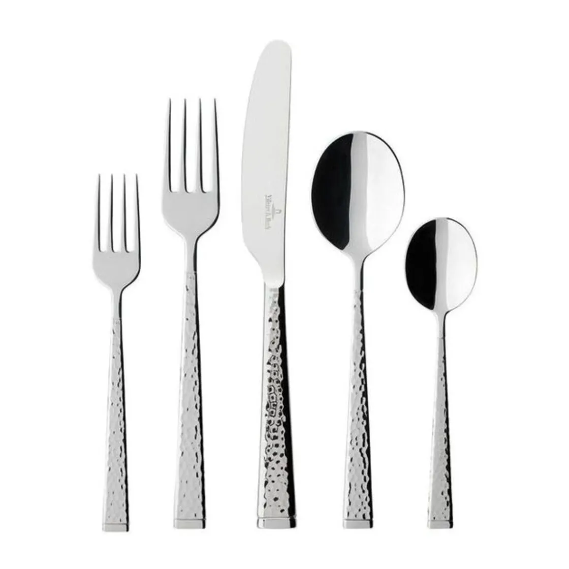 Die Besteck-Kollektion Blacksmith fällt durch Ihre attraktiven Punzierungen an den Griffen besonders ins Auge. Sie sind ein hübscher Kontrast zur elegant reduzierten Form des Tafelbestecks von .Das Besteck aus hochwertigem Edelstahl ist ausdrucksstark, hervorragend verarbeitet und für den täglichen Gebrauch ausgelegt. Das Gewicht ist besonders bei den Messern sehr gut ausgewogen, somit liegen die einzelnen Besteckteile angenehm in der Hand.Das Tafelbesteck-Set Blacksmith ist für 6 Personen ausgelegt und beinhaltet: