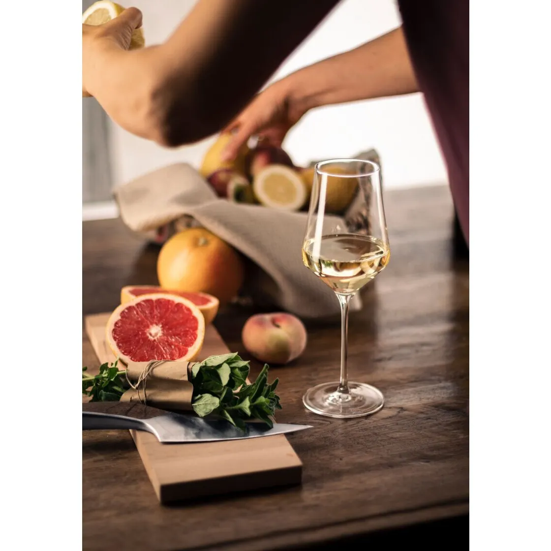 Durch die geometrische Form glänzt das Weißweinglas der Serie Sky Sensis plus von besonders formschön.