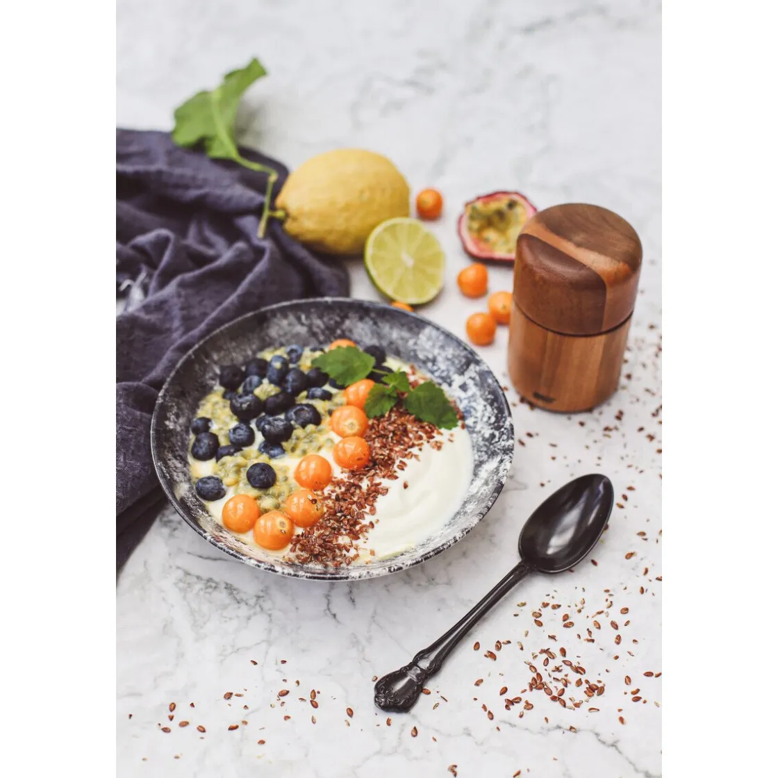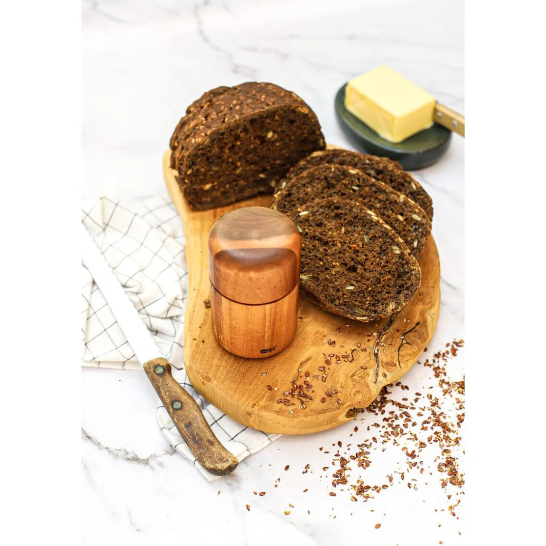 Diese formschöne Leinsamenmühle Seedo von hilft Ihnen beim Mahlen von Sesam, Leinsamen, Quinoa und anderen Saaten. Das helle Akazienholz liegt angenehm in den Händen und versprüht eine natürliche Wärme, die zur Nutzung einlädt.