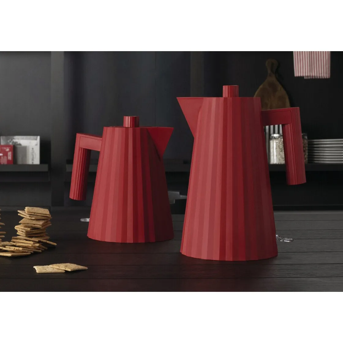 Das Erste, an was wir denken, wenn wir diesen Wasserkocher der Marke ansehen, ist ein schickes modisches Kleidungsstück mit feinem Faltenwurf. Tatsächlich ähnelt die Kollektion Plissé von Designer Michele De Lucchi einem Haute Couture Kleid. Der Entwurf für die italienische Designfirma Alessi vereint die Vorliebe für Handwerk, Skulpturen und Architektur. Dieser Wasserkocher ist eines dieser Küchenobjekte, die unbedingt einen festen und sichtbaren Platz in der Küche haben sollten.