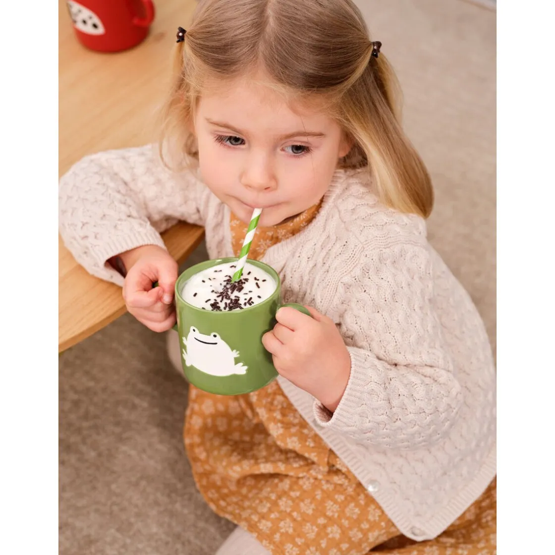 Der Henkelbecher Kids Buddies Frosch von begeistert mit seinen intensiven Farben, seinem fröhlichen Frosch-Motiv und den ergonomisch geformten Henkeln. Die lustige Form des Frosches und seine ertastbare Oberflächenstruktur machen ihn schnell zum neuen Freund Ihrer Kinder, da er sich so schön erlebbar zeigt. Peppen Sie Ihr Kindergeschirr mit diesem Becher fröhlich auf.