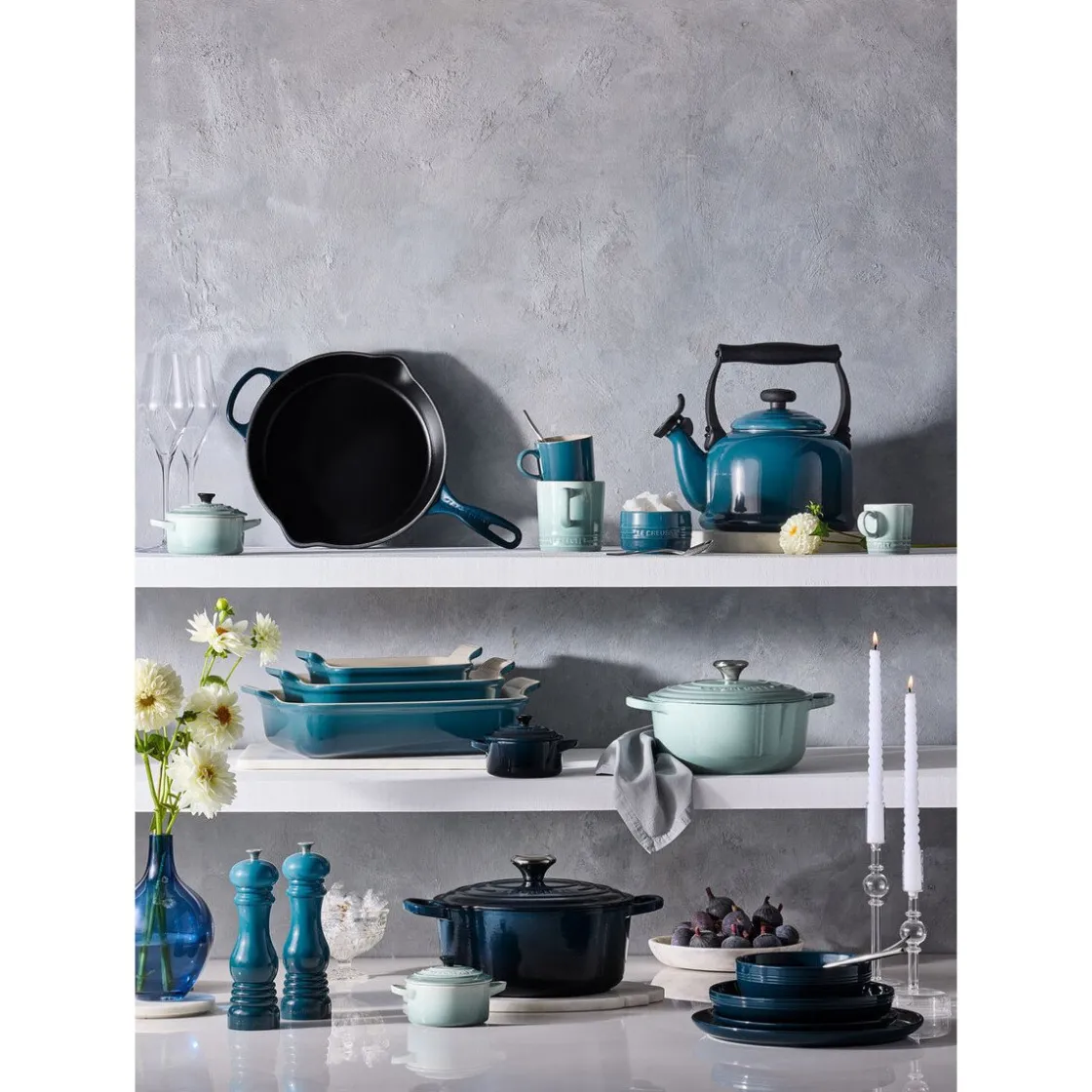 Mit dem ovalen Bräter mit Deckel Signature Nuit von sorgen Sie für gleichmäßige Ergebnisse, eine hohe Saftigkeit und intensive Aromen. Der gut aussehende Bräter bereichert Ihre Tafel mit seinem schönen Nachtblau, während er Ihre Speisen durch seine hohe Materialqualität gleichzeitig lange auf Temperatur hält. Bringen Sie mit diesem Stück verführerische Gerichte auf den Tisch.