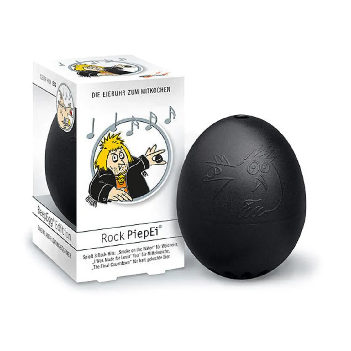 Das Rock PiepEi® ist einfach zu bedienen und macht den faulsten Küchenmuffel zum Eierprofi. Natürlich ist auch das Rock PiepEi® mit der 3-Melodien Technik für alle Härtegrade (auch ein Rock PiepEi® kann ein Weichei) ausgestattet. Einfach zusammen mit den echten Eiern lagern, zusammen kochen, warten bis der Kochtopf rockt, zusammen abschrecken und nur die echten Eier essen (auch für die ganz harten Jungs eignet sich das PiepEi® nicht zum Verzehr).
