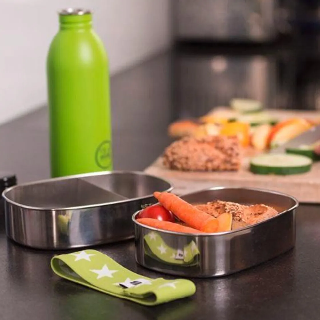 Die Lunchbox Magic von ist das nachhaltige Pendant zu Butterbrotpapier und Zellophantüte. Sie können diese unverwüstliche Dose aus Edelstahl immer und immer wieder mit leckeren Pausenbroten und Mahlzeiten to go bestücken. Eine herausnehmbare Trennwand teilt die Box nach Wunsch in zwei kleinere Boxen ein. Sie ist das Nachfolgemodell der Serie Uno/ Duo.