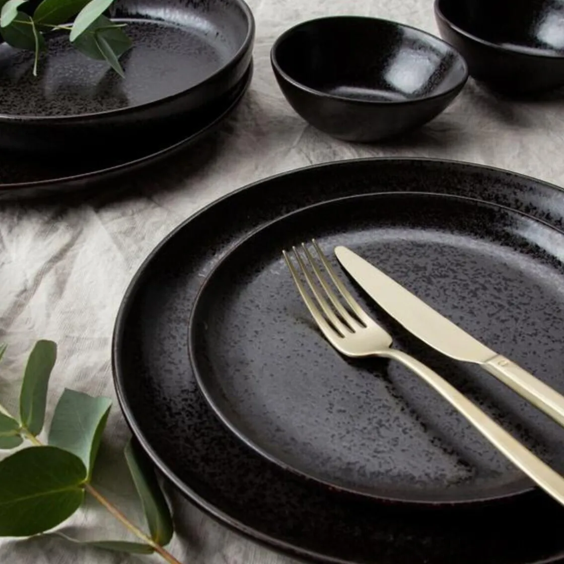 Dieser ausdrucksstarke Frühstücksteller der Serie Java von begeistert durch seine faszinierende Farbgebung, die von einem strukturierten Mix aus Schwarz und Anthrazit geprägt ist und durch ein schattiges Braun vollendet wird. Die unregelmäßige Musterung mit den glänzenden Glasursprenkeln lässt Ihr Frühstück kontrastreich erscheinen und bleibt Ihren Gästen mit seinen erdig angehauchten Rändern auch lange nach ihrem Besuch im Gedächtnis.