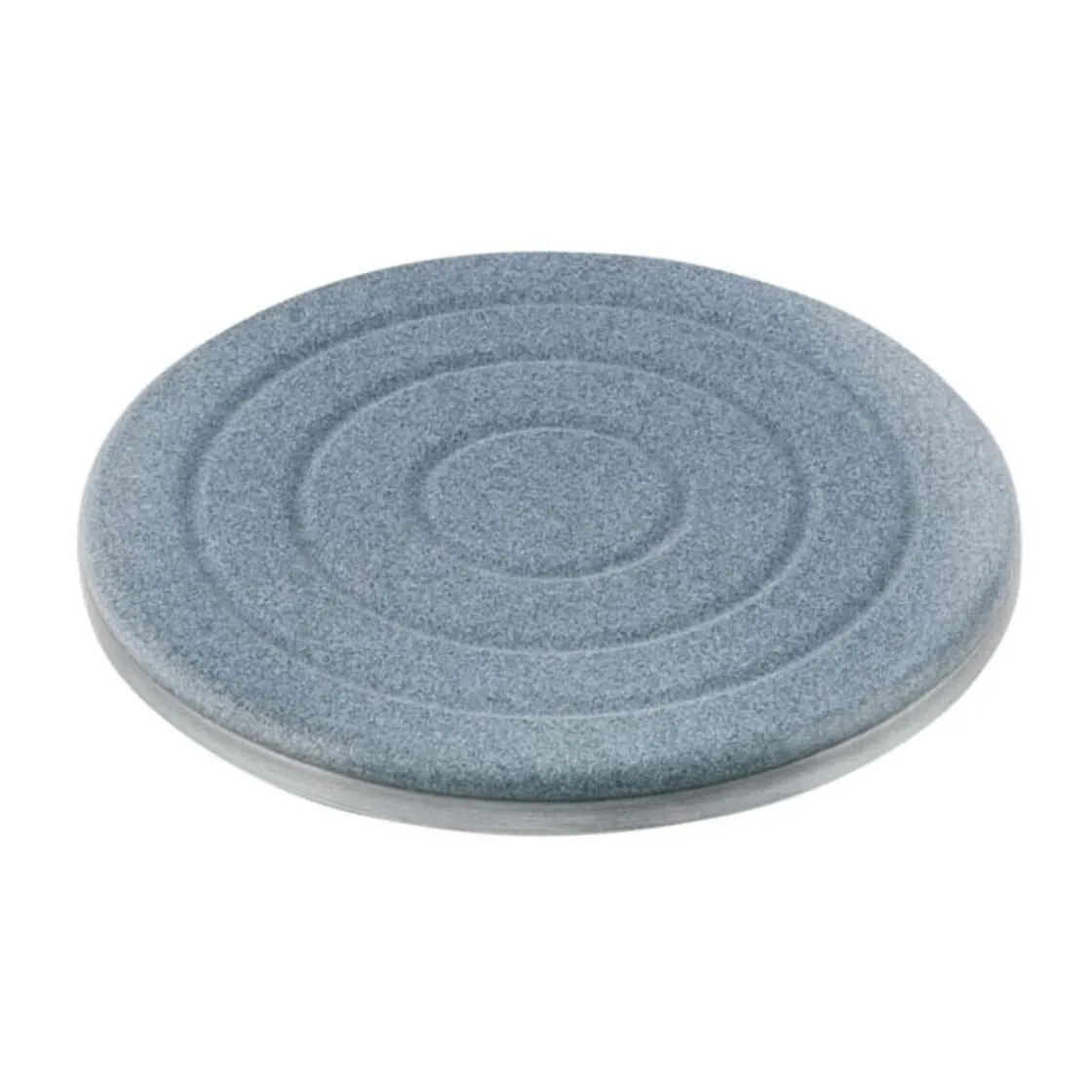 - Scheibe aus Edelstahl, die durch ein Sandstrahlverfahren ihre Keramikpartikel erhält