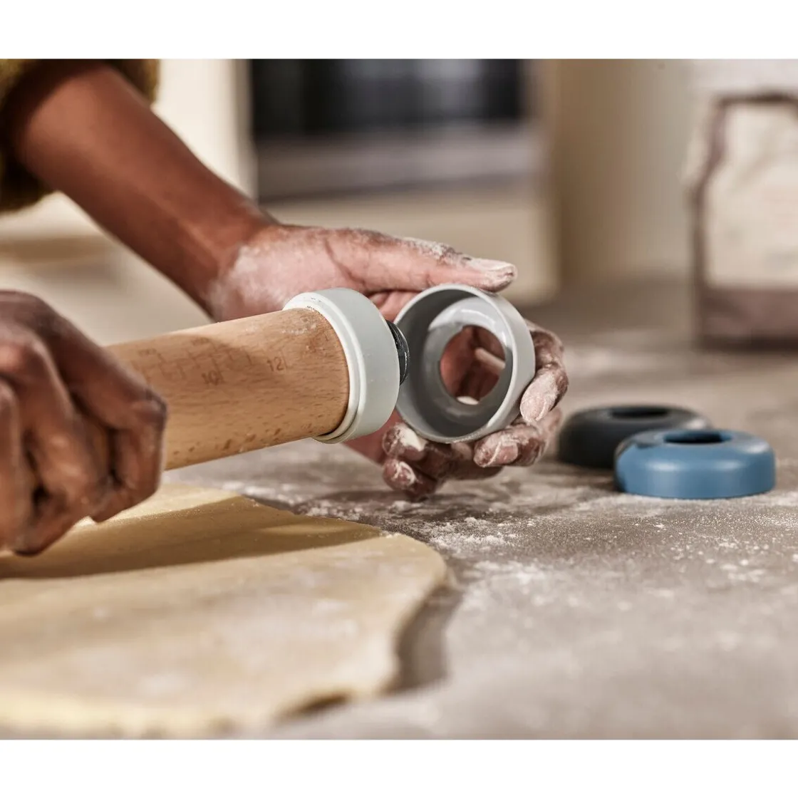 Mit dem höhenverstellbaren Nudelholz PrecisionPin von flitzen Sie geschmeidig über Ihren Teig und lassen ihn bei jeder Anwendung unterschiedlich aussehen. Mal mit einer Dicke von 2 mm und ein anderes Mal mit einer Dicke von 8 mm. Einfach den richtigen der fünf Ringe auswählen, die anderen entfernen und schon erhalten Sie das gewünschte Ergebnis.