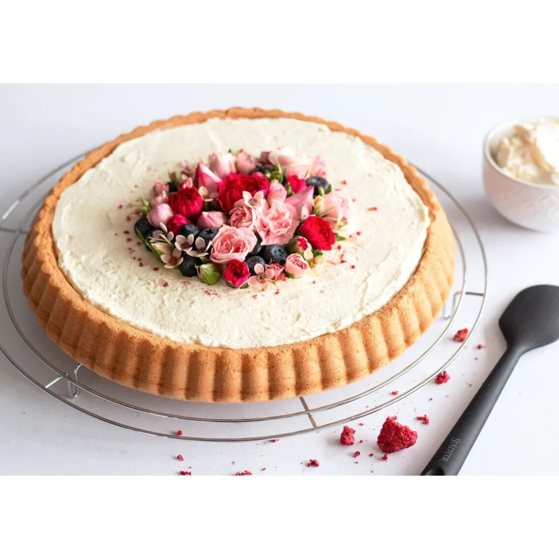 Mit dem Torten-/Kühlgitter von haben Sie einen praktischen Backhelfer zur Hand, der für ein schnelles Abkühlen Ihrer Backwaren sorgt. Ob Tortenboden, Weihnachtsplätzchen oder Muffin – durch dieses Auskühlgitter ist eine ideale Luftzirkulation möglich, die ein zeitnahes Weiterverarbeiten Ihrer Backkreationen möglich macht. Nutzen Sie dieses Gitter in Ihrem Backprozess und verbessern Sie damit den Ablauf.