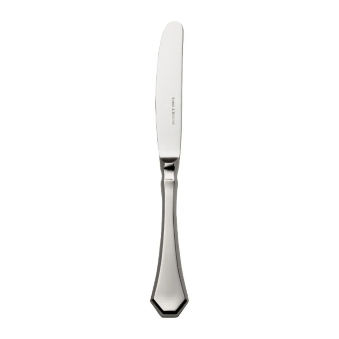 Das Menümesser Baltic von begeistert durch die markante Formsprache seines Stiels, die durch feine Facetten begrenzt ist und kantenreich wirkt. Die Klinge berührt auf der Tafel nie die Tafeldecke, da der Schwerpunkt ideal austariert und nach hinten verschoben ist. So macht das Eindecken und Genießen Freude.