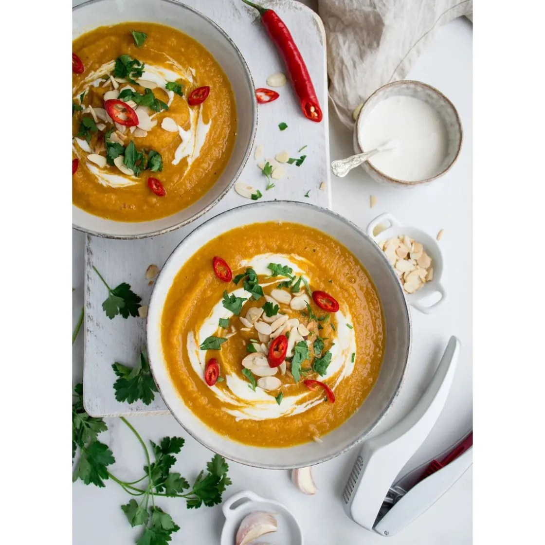 Schnell, effektiv und mühelos – Mit der Knoblauchpresse Susi 3 der Marke können gleich mehrere Knoblauchzehen auf einmal, auch ohne vorheriges Schälen, gepresst und zerkleinert werden. Durch den ergonomisch geformten Griff ist kein Kraftaufwand nötig.