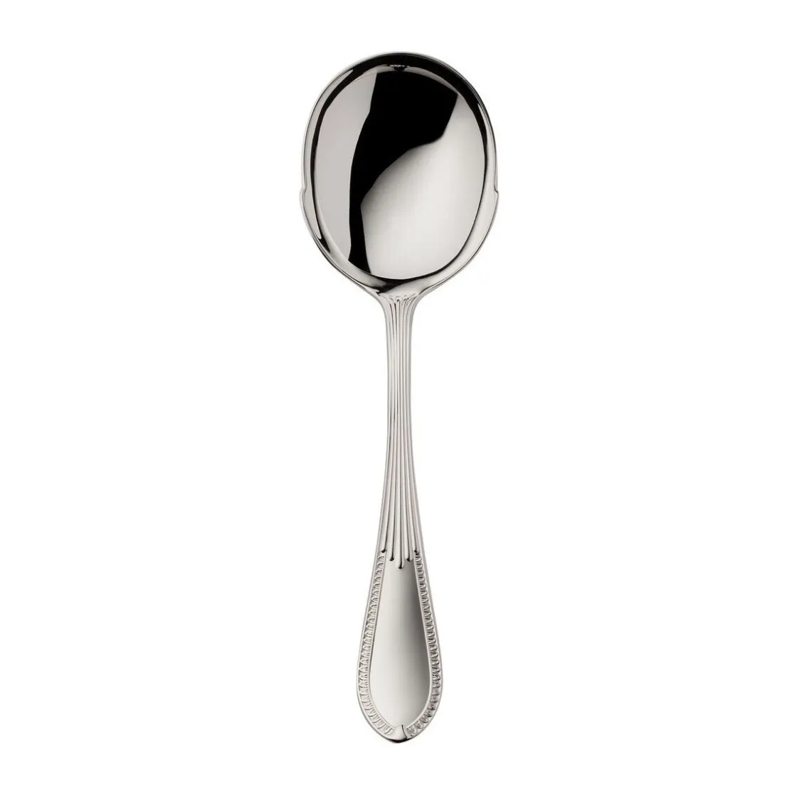 Formschöne Ästhetik, schlichte Eleganz und höchsten Nutzungskomfort verbindet der Kartoffellöffel Belvedere von Robbe & Berking. Das versilberte 150er Material punktet dabei mit seiner polierten Optik genauso wie mit seiner Spülmaschinenfestigkeit, die eine unkomplizierte Reinigung ermöglicht. Das leicht romantische Design des Kartoffellöffel Belvedere trägt schließlich zu seiner zeitlos-edlen Ausstrahlung bei und bereichert jede gehobene Mahlzeit im privaten oder auch öffentlichen Umfeld.