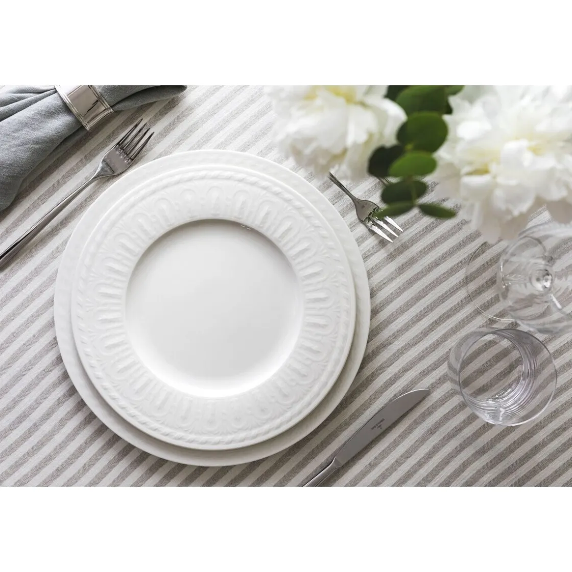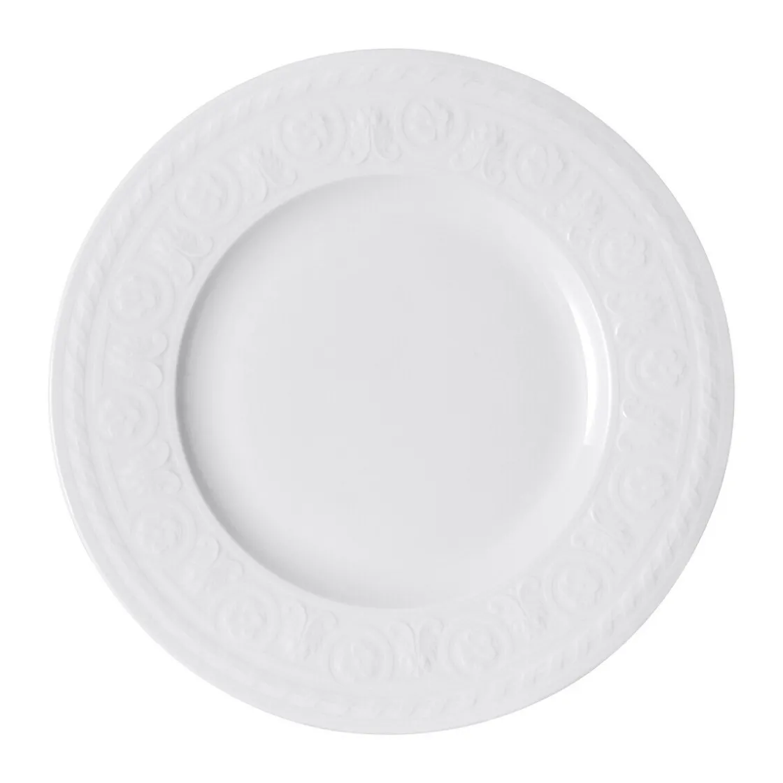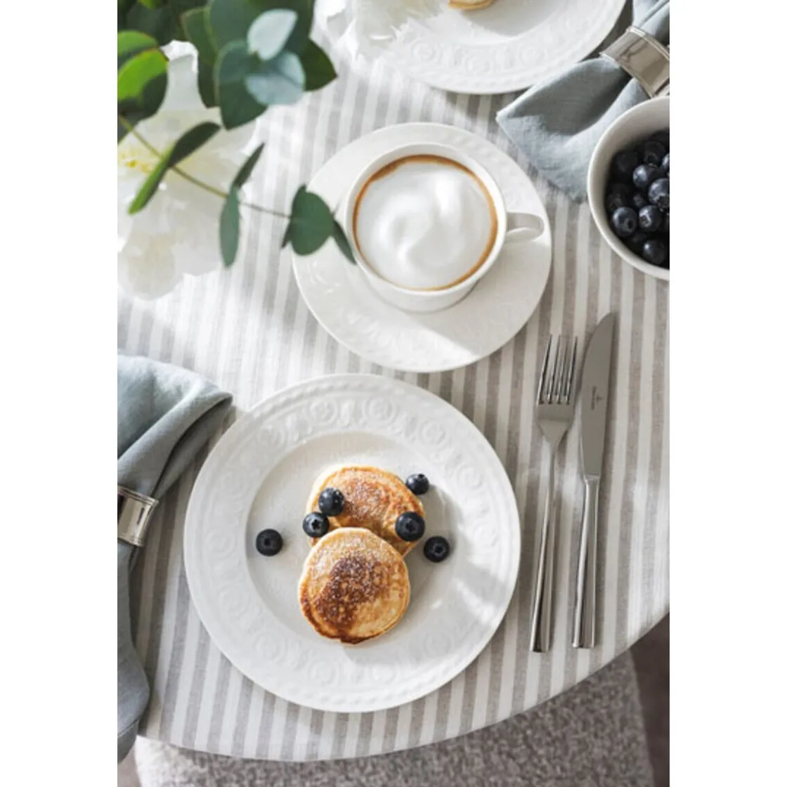 Mit dem Frühstücksteller Cellini von kommt klassische Eleganz auf die Tafel. Die breite Fahne ist von einem hübschen Relief geprägt, das an die Renaissance erinnert und deren architektonische Schönheit hervorhebt.