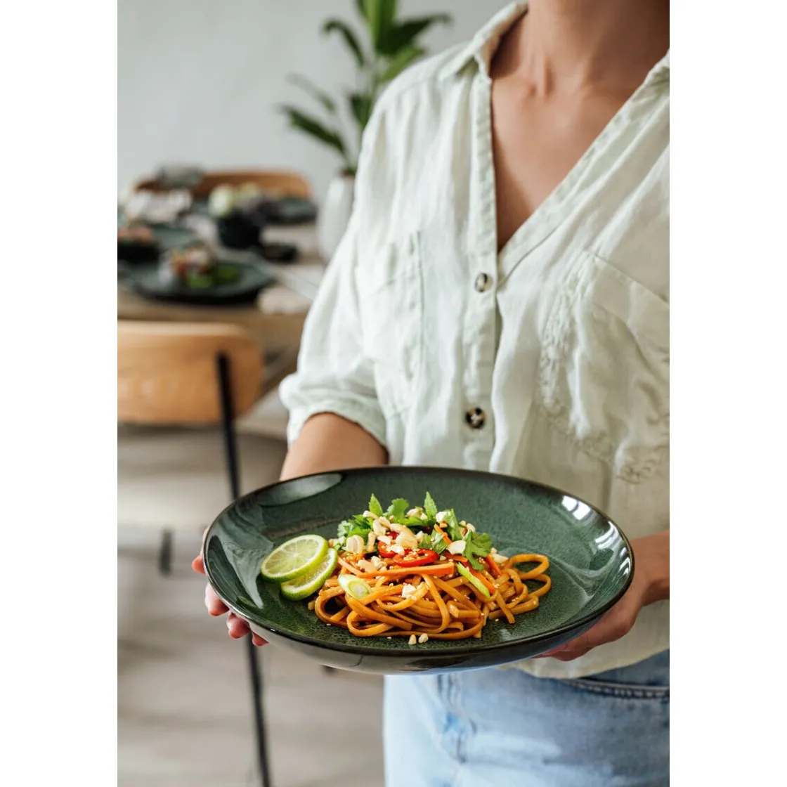 Pottery-Charme für alle: Durch die Schale Lave vert von tischen Sie mit skandinavischer Anmut und farbenfroher Vielfalt auf. Salate oder Beilagen lassen sich auf diesem Geschirrstück verführerisch anrichten und werden von den facettenreichen Farbtönen und den geschwungenen Linien einladend untermalt. Setzen Sie mit dieser Schale kunstvolle Akzente.