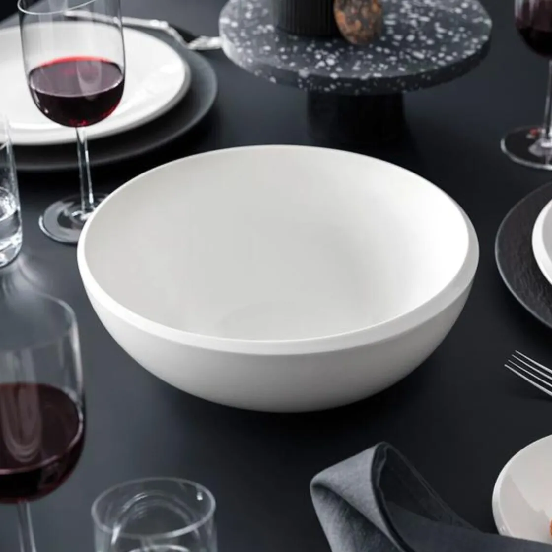 Die puristisch ausgestaltete Schüssel NewMoon von ist zum Servieren von großen Mengen für die ganze Familie ideal geeignet. Der Rand erinnert an die Form einer Mondsichel und verleiht der Komposition einen asymmetrischen Charme.