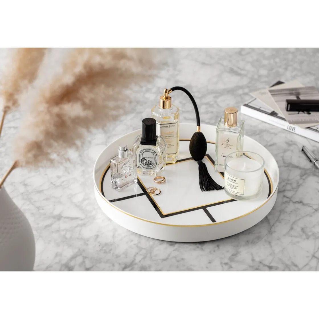 Die Servierschale MetroChic Gifts von ist von einem Dekor geprägt, das geometrische Klarheit und einen brillierenden Glanz in den Mittelpunkt stellt. Weingläser oder die Teekanne mit Milch und Zucker lassen sich mit diesem Tablett hervorragend präsentieren; auch Obst kommt darin exquisit zur Geltung. Kreieren Sie mit dieser Schale eine blickfangende Tafel im Sinne des Fine Dining.