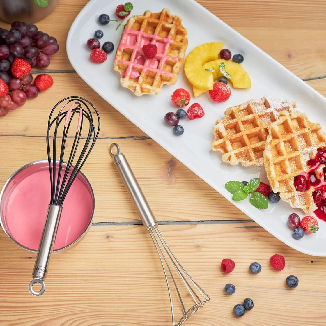 Robust, schonend und leicht zu reinigen – der Schneebesen von ist ein praktischer Küchenhelfer, mit dem Sie Pfannkuchenteig und Cremes mühelos zubereiten und Soßen oder Suppen schnell binden.