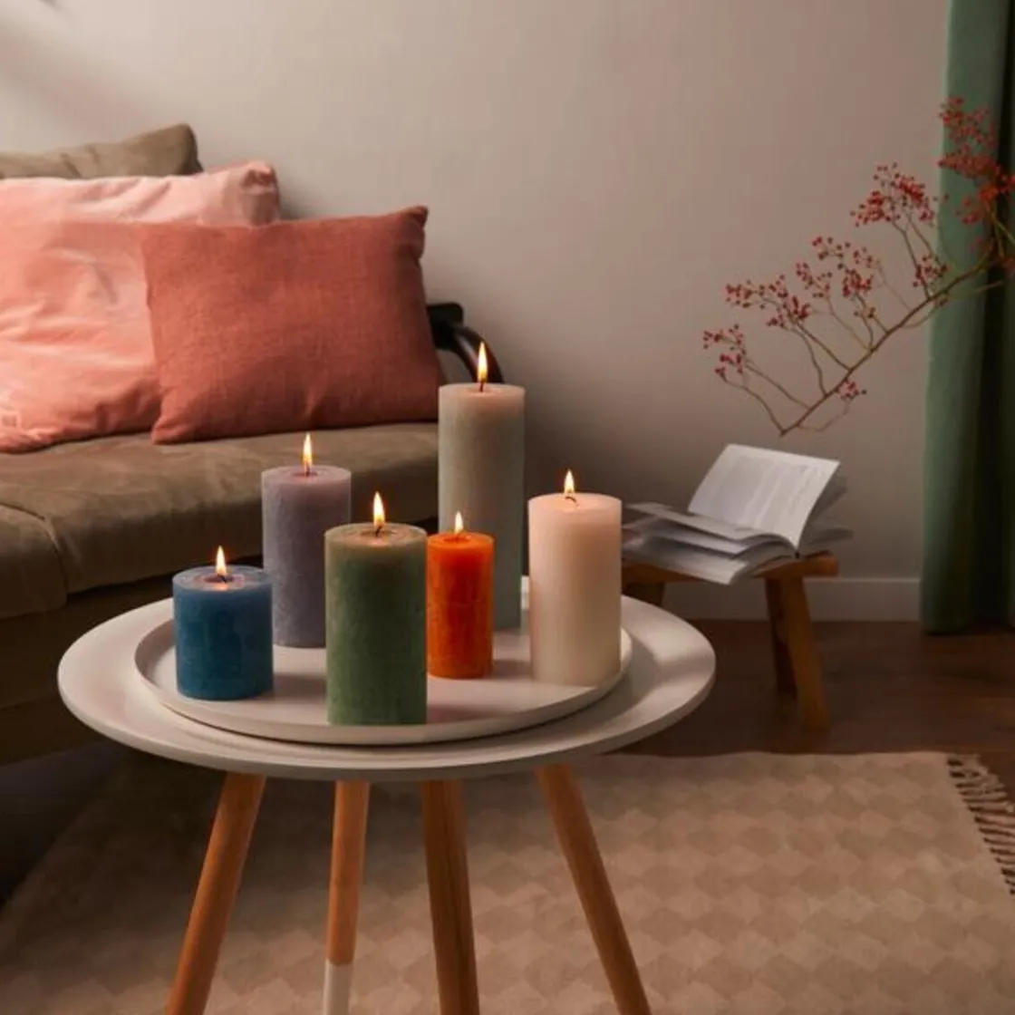 - Stumpenkerze Rustik Shine Samtrot im praktischen 4er-Set