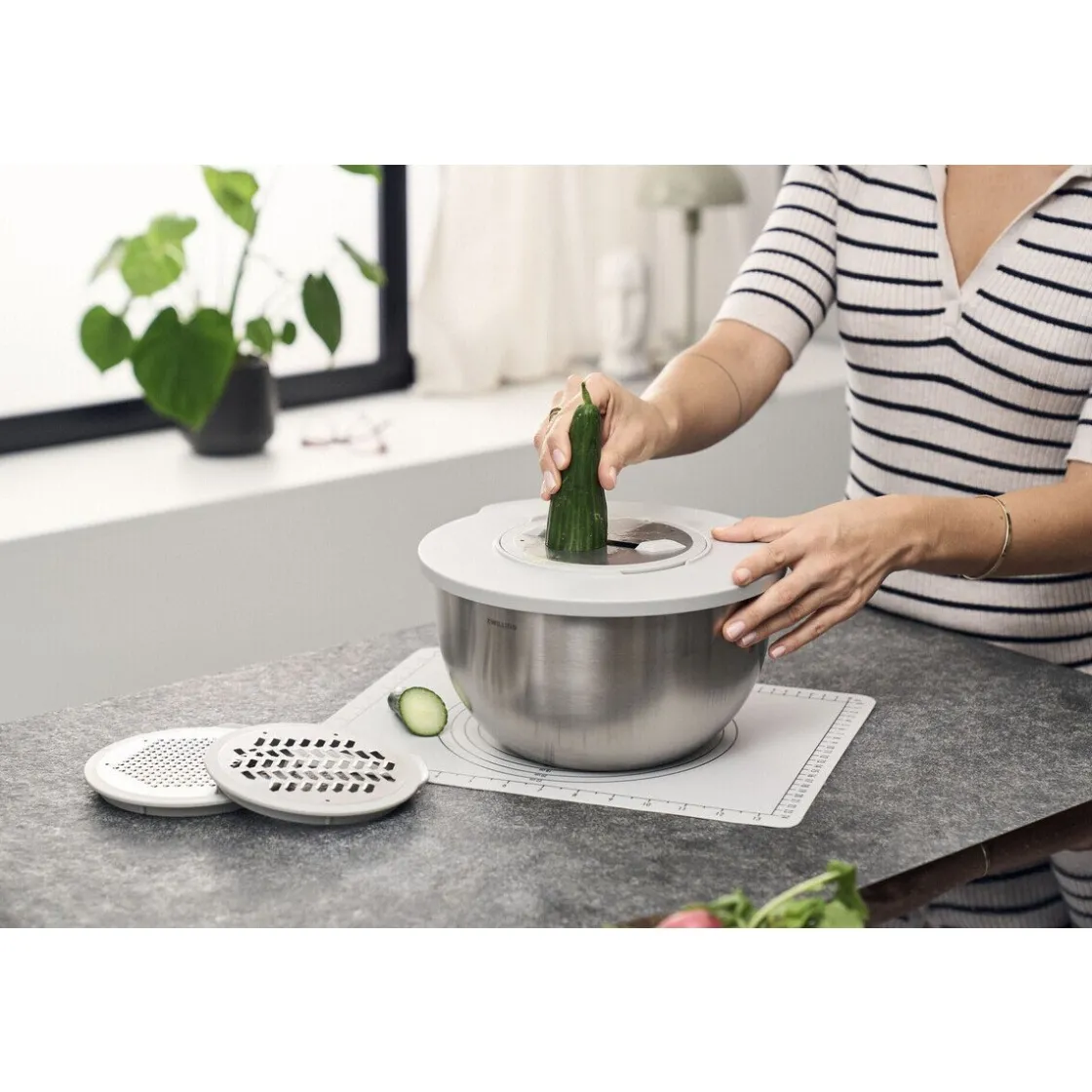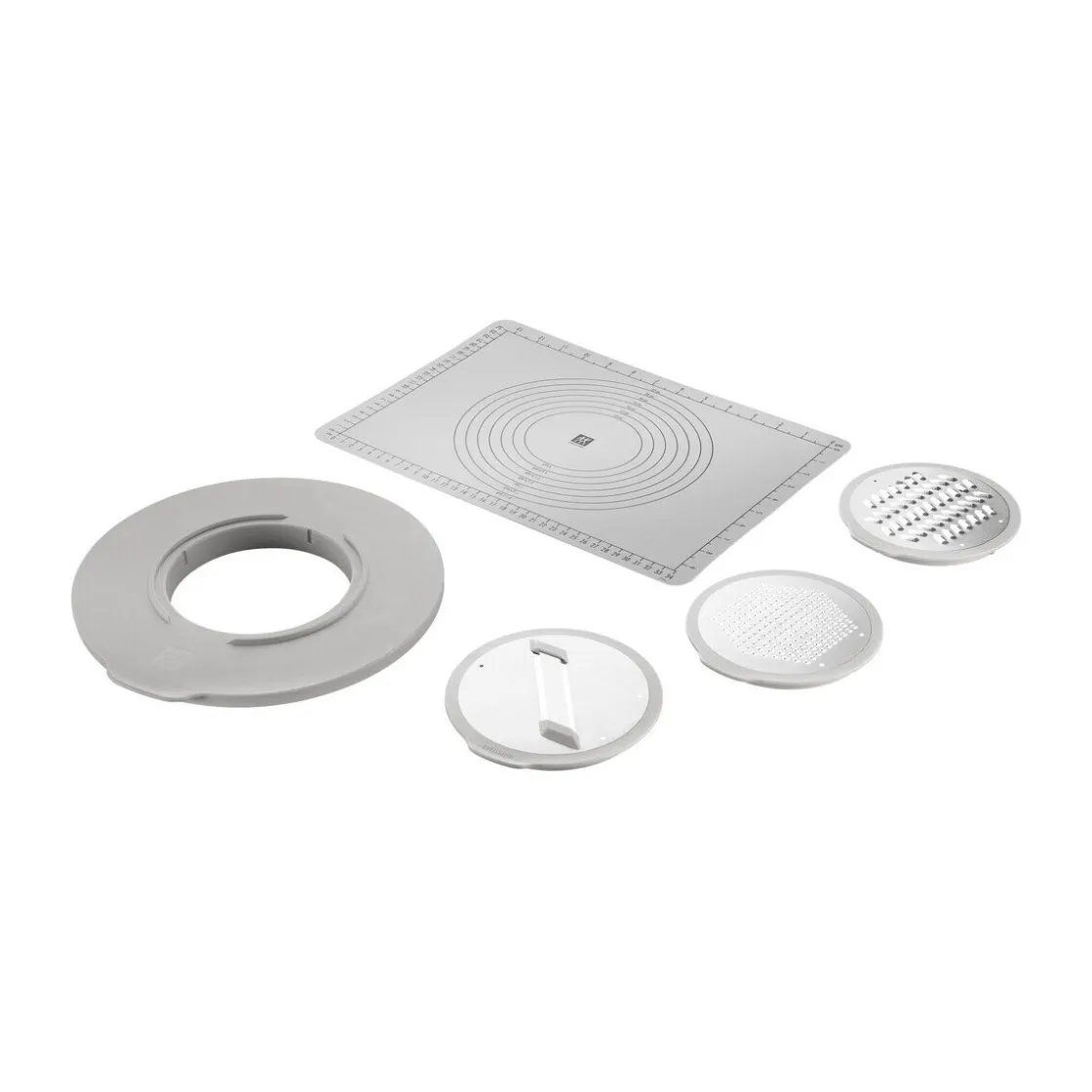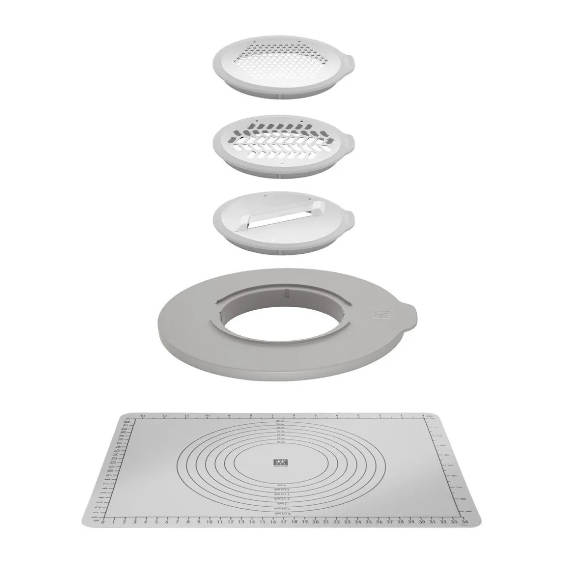 - Zubehörset für ZWILLING FRESH & SAVE BOWLS mit Spritzschutz, 3 Reibeaufsätzen und backofenfester Anti-Rutsch-Silikonmatte